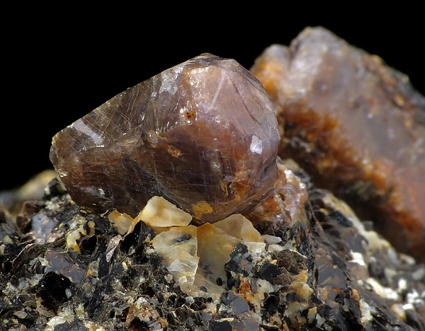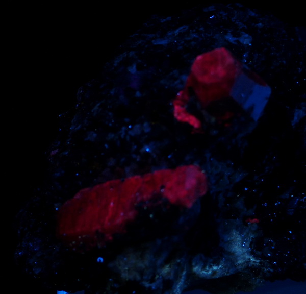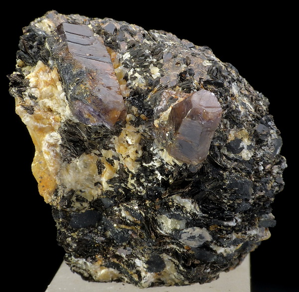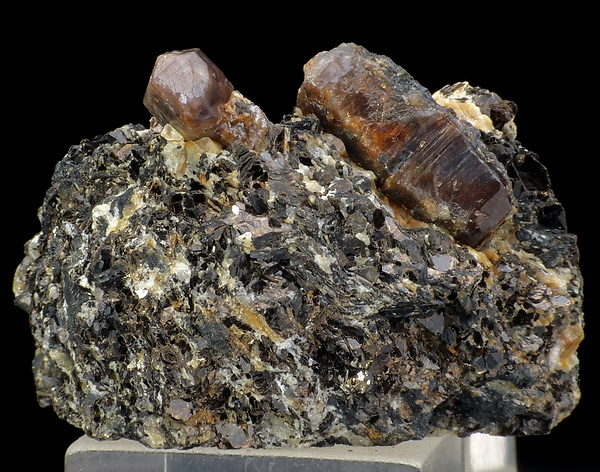 Kryształy korundu w matrixie. Wielkosc kryształów - 2.2 i 1.2 cm.