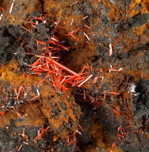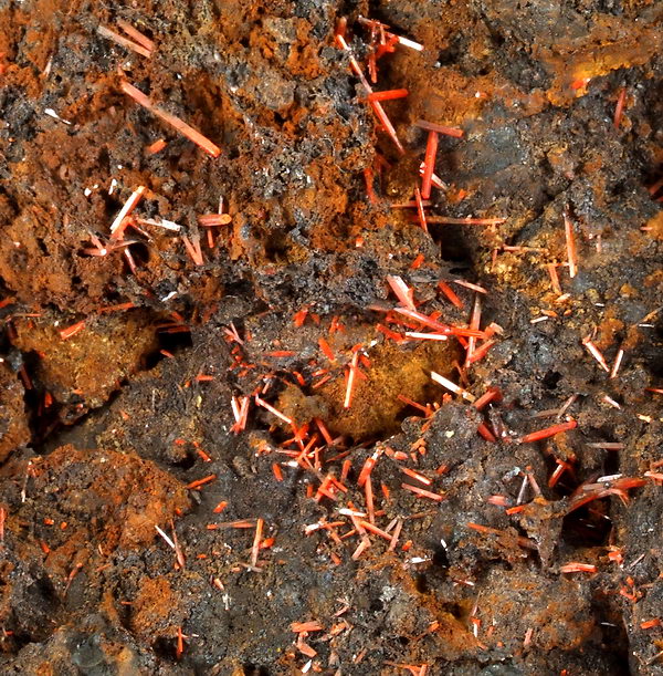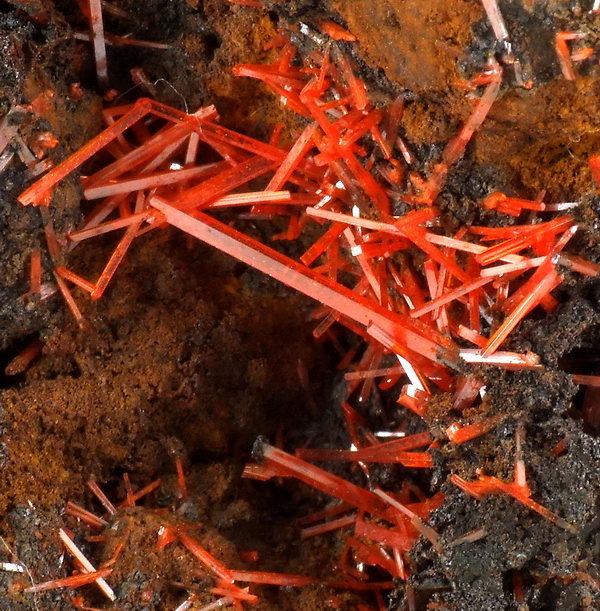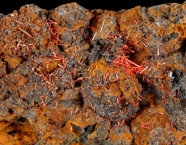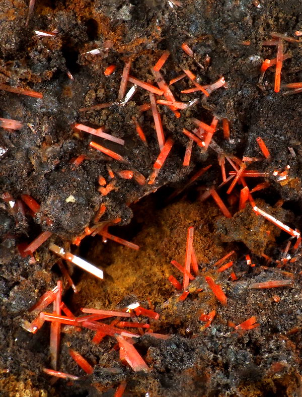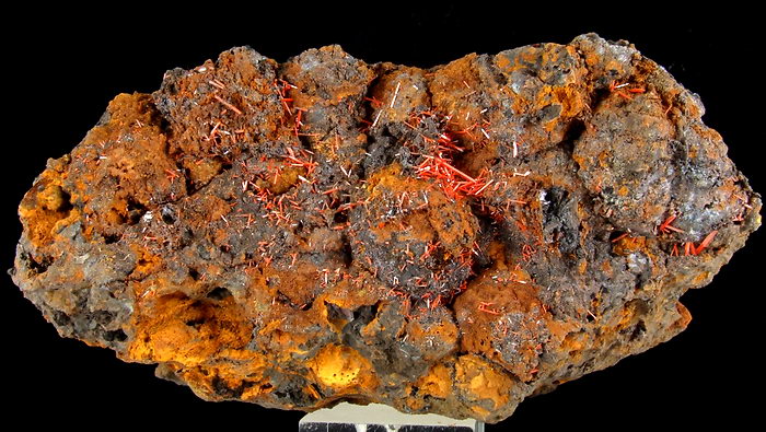 Duży rewelacyjny okaz z czerwonymi, idelnie wykształconymi kryształami rzadkiego minerału z grupy chromianów - krokoitu.