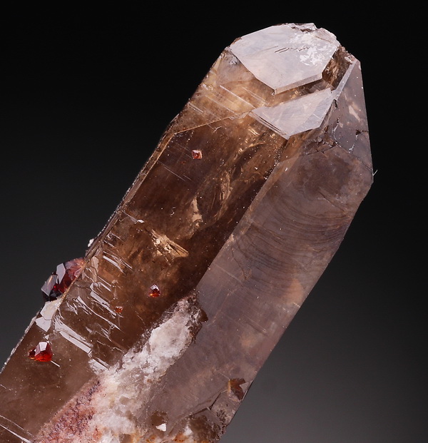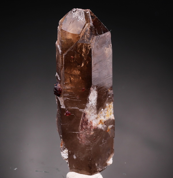 Dobrze wykształcony i błyszczaący kryszta kwarcu dymnnego.