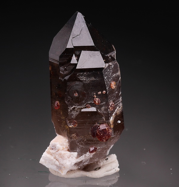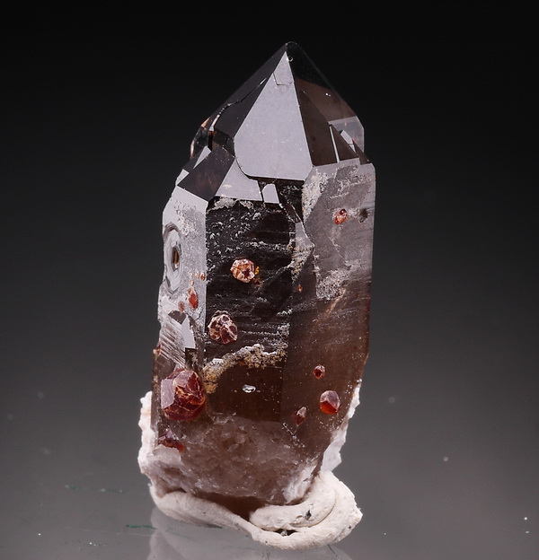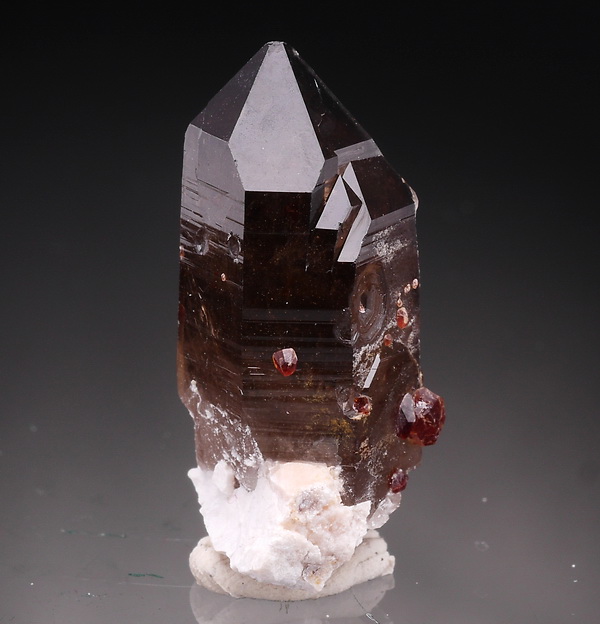 Dobrze wykształcony i błyszczaący kryszta kwarcu dymnnego.