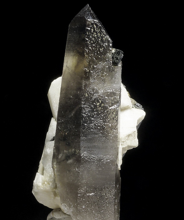 Dobrze wykształcony, prześwitujący kwarcu dymnego z ortoklazem i arfvedsonitem.