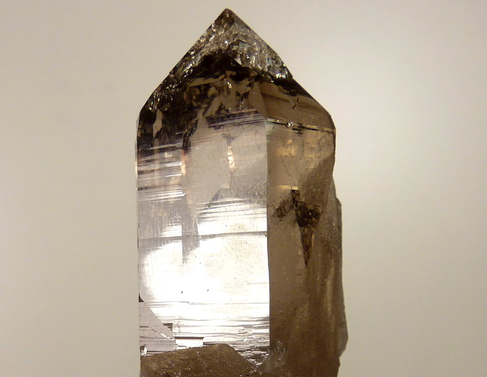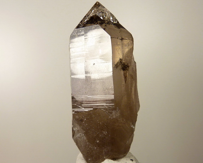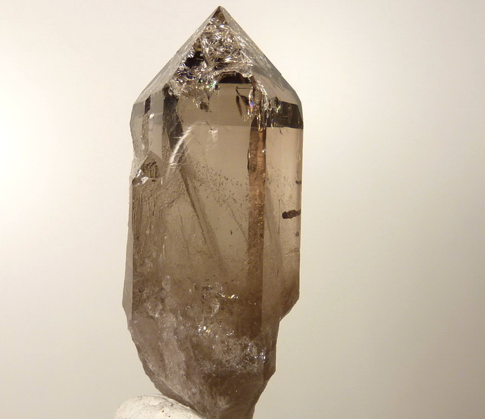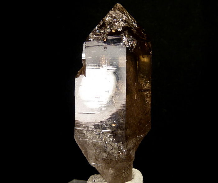 Idealnie wykształcony, przezroczysty kryształ kwarcu dymnego z klasycznej lokalizacji.