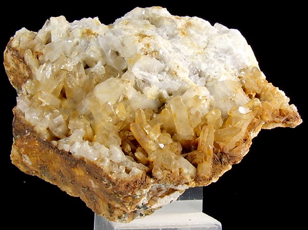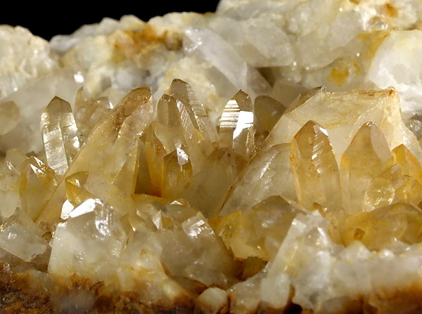 Szczotaka błyszczących kryształów kwarcu na granicie.