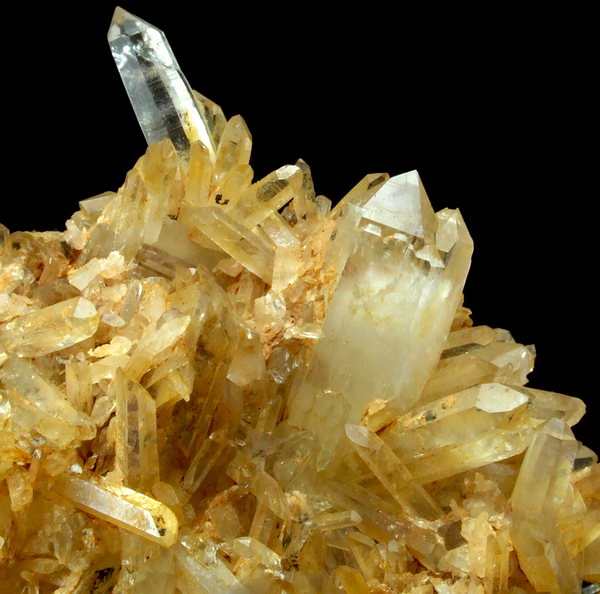 Błyszcząca szczotka kwarcu (kryształu górskiego) z klasycznej lokalizacji. Kryształ do 3 cm.