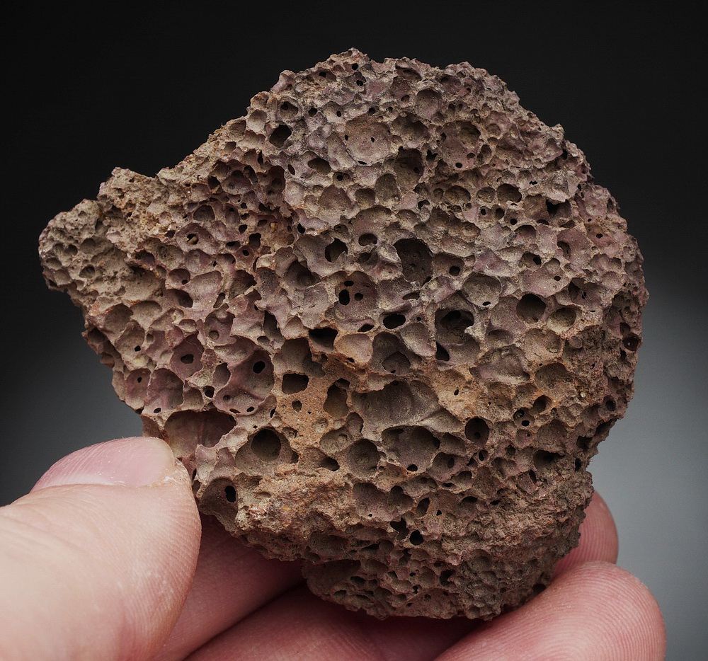 Okaz gąbczastej zastygłej lawy - scorii z dawnego dolnośląskiego wulkanu.