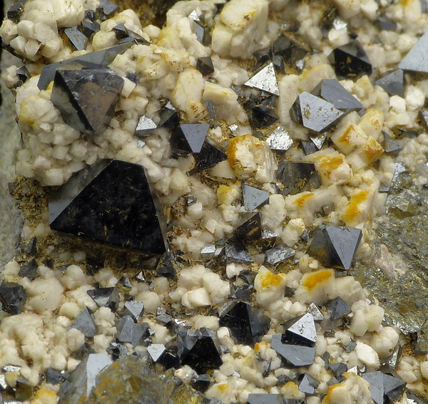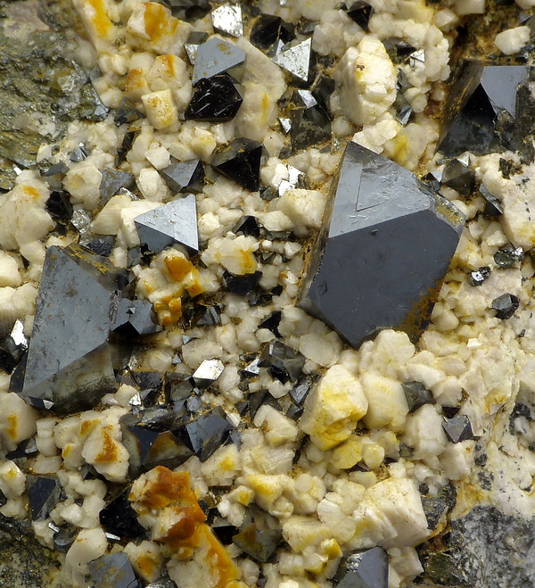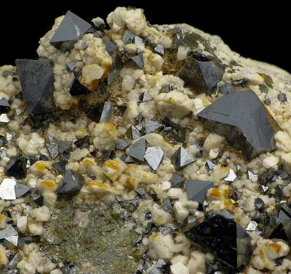 Idealnie wykształcone kryształy magnetytu o silnym połysku osadzone na matrixie.