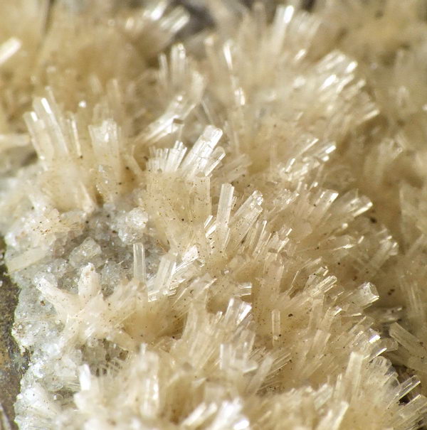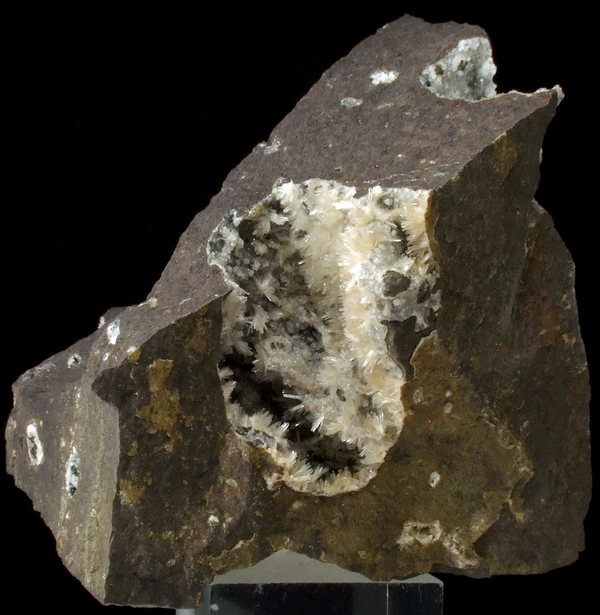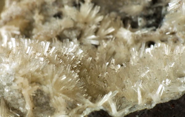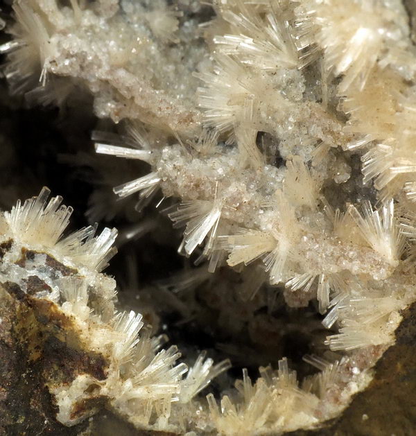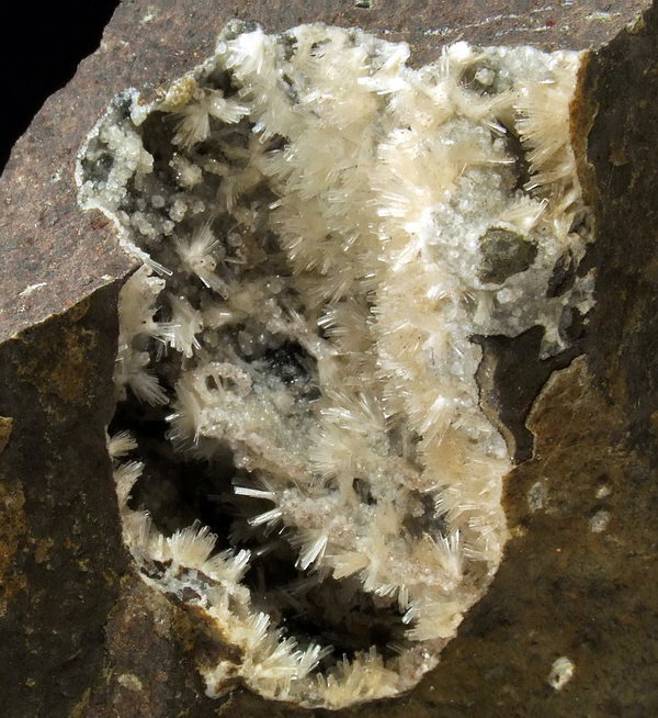 Wspaniały okaz - szczotka błyszczących, igiełkowych kryształów natrolitu w w geodzie.