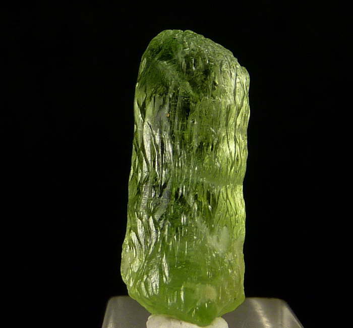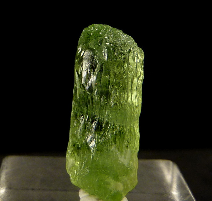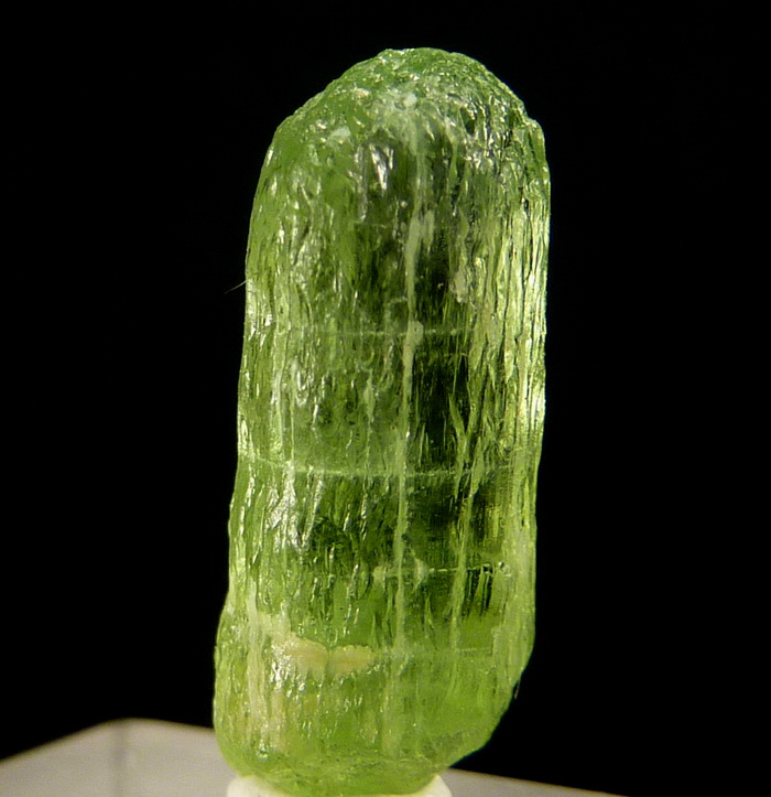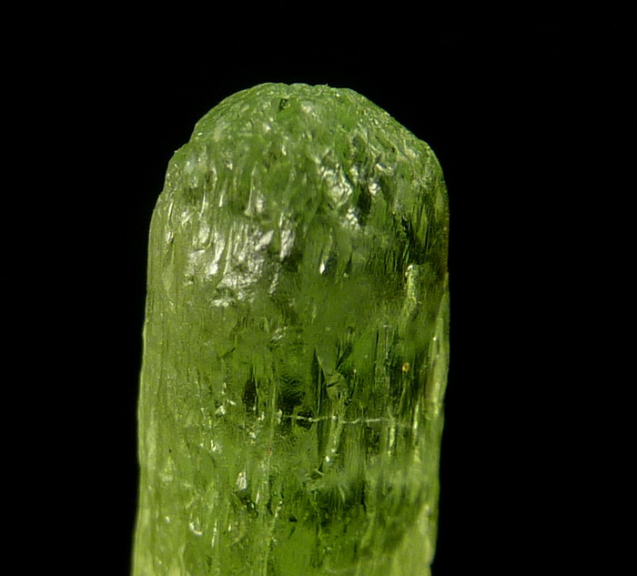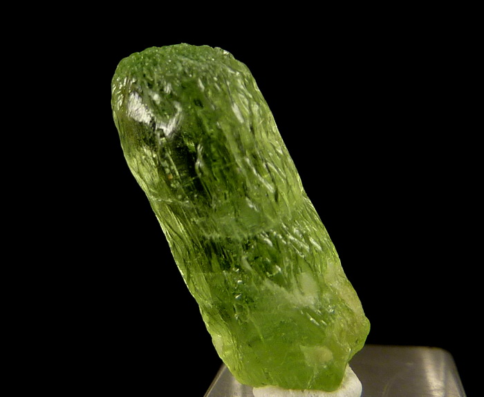 Ciekawyv kryształ perydotu (oliwin szlachetny) o pięknej intensywnie zielonej barwie.