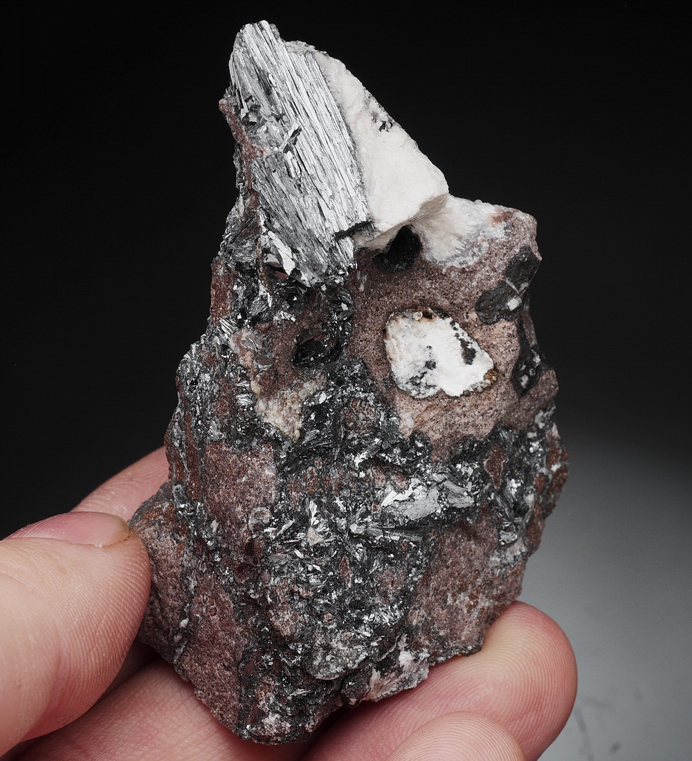 Rewelacyjne, promieniste skupienia niezwykle błyszczących kryształów piroluzytu z barytem w matrixie.