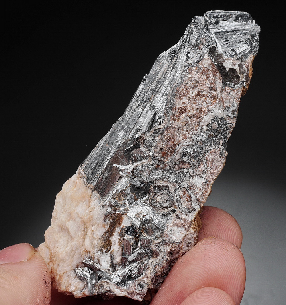 Rewelacyjne, promieniste skupienia niezwykle błyszczących kryształów piroluzytu z barytem w matrixie.