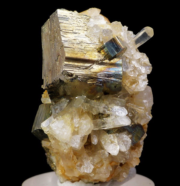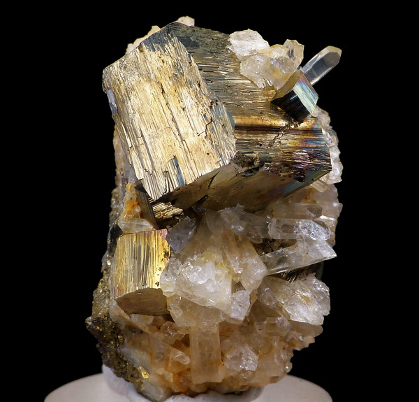 Błyszczący kryształ pirytu na kwarcowym matrixie.