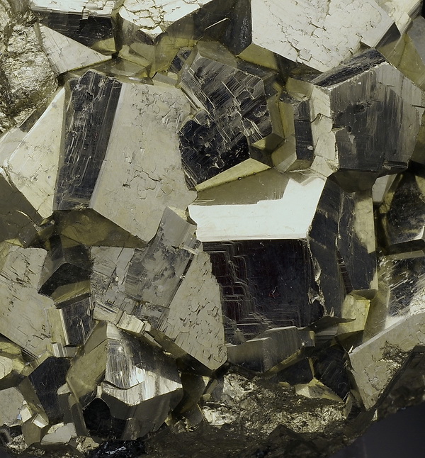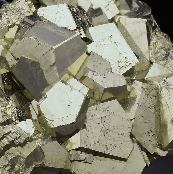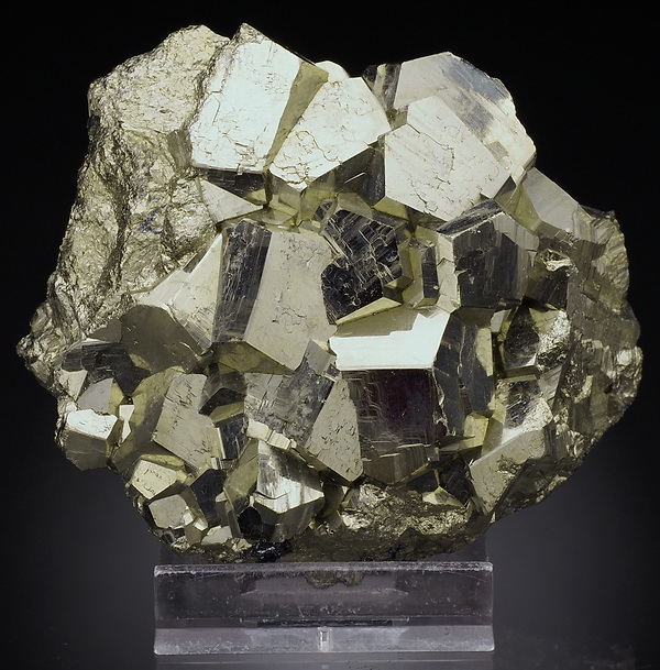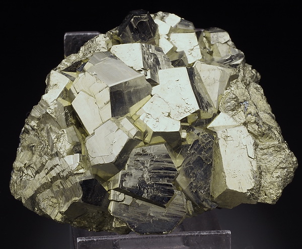 Bardzo błyszczący okaz złocistych kryształów pirytu.