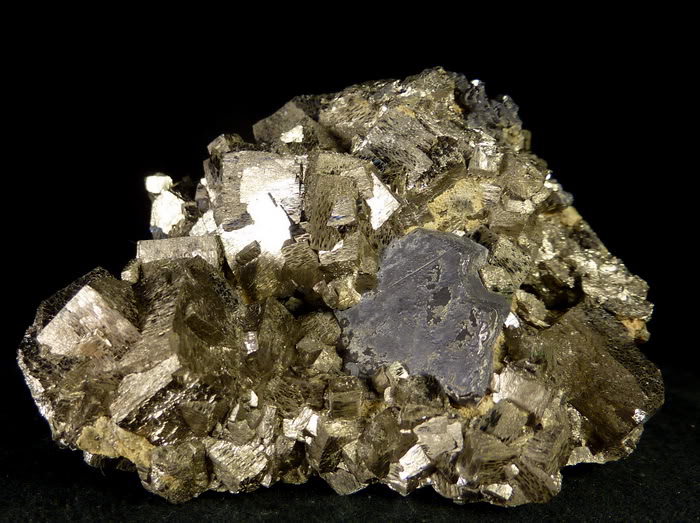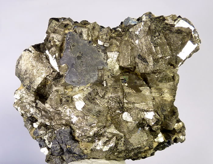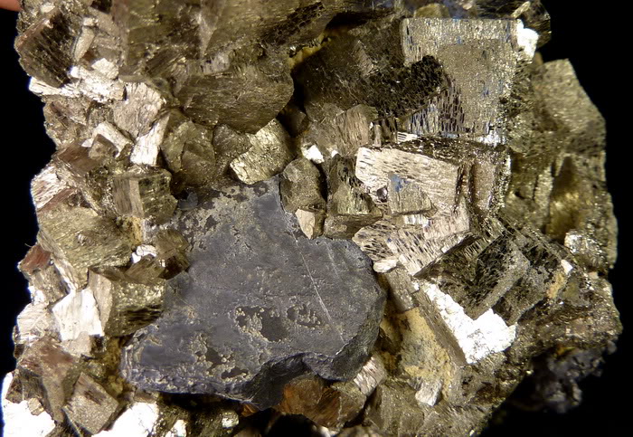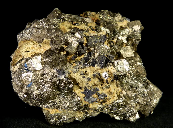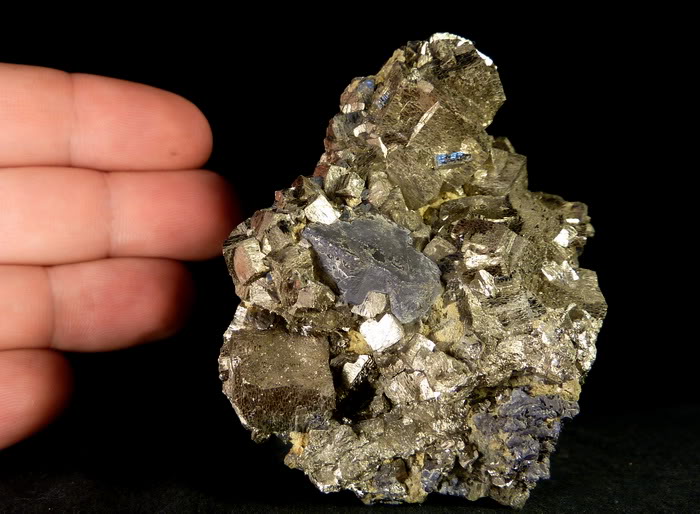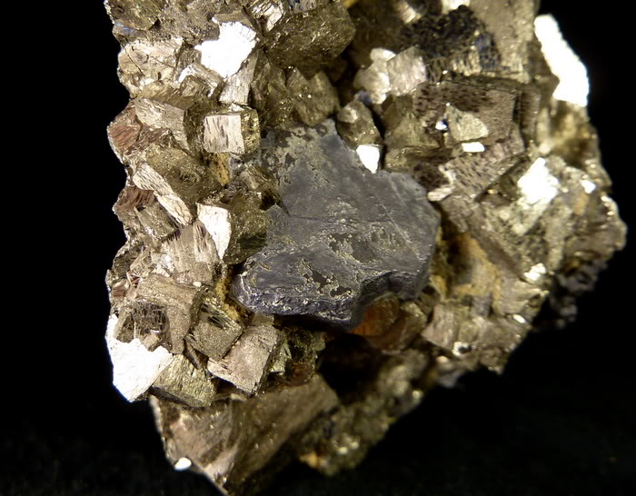 Ciekawy okaz złocistych kryształów pirytu z galeną.