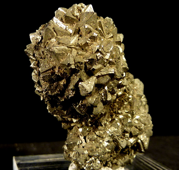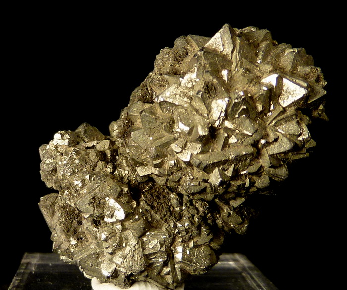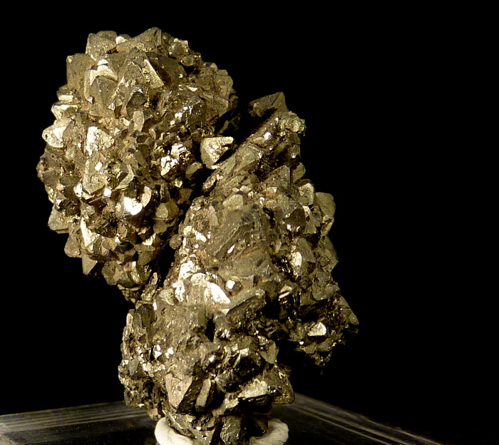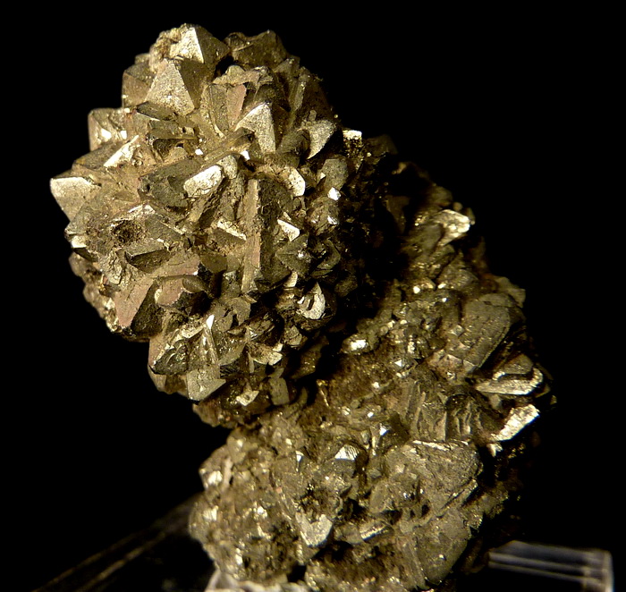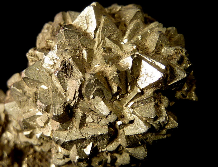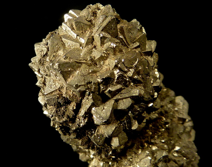 Ciekawy zrost błyszczących kryształów pirytu z dewońskich łupków z Gór Świętokrzyskich