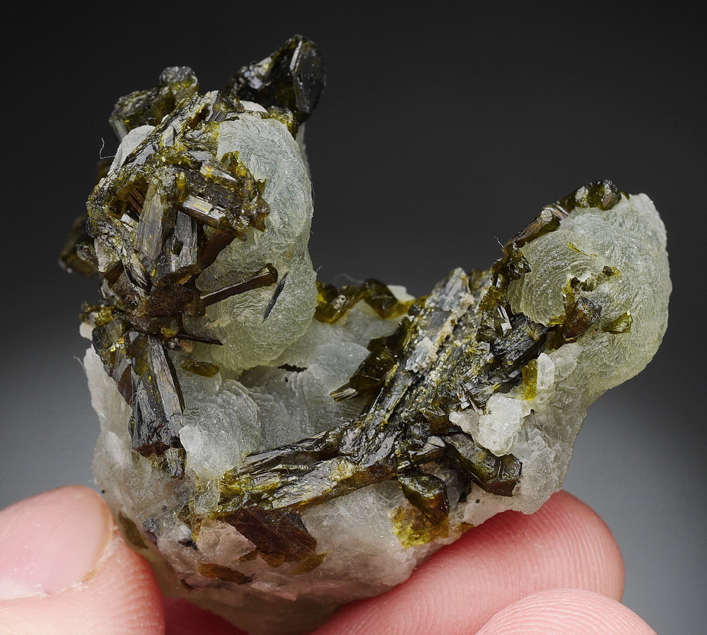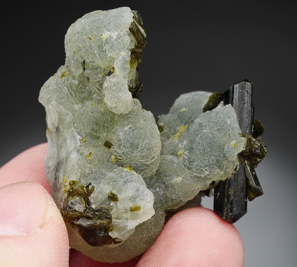 Skupienia zielonego prehnitu z epidotem.