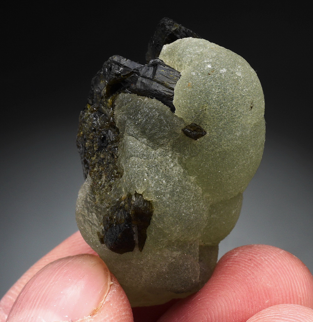 Skupienia zielonego prehnitu z epidotem.