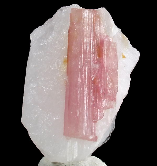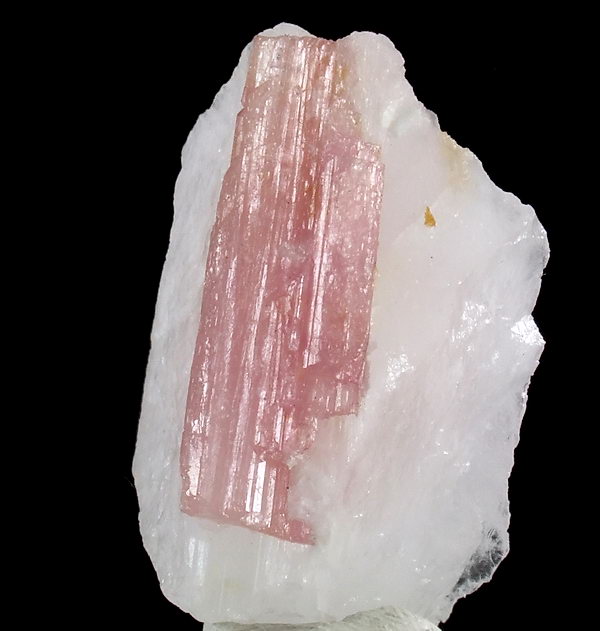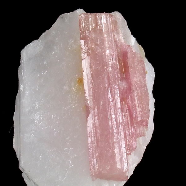 Kryształy błyszczącego rubelitu (turmalin) osadzone w kwarcu.