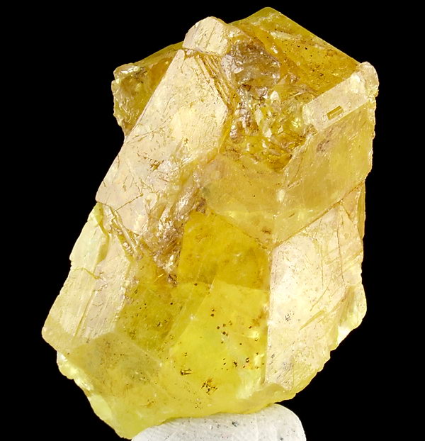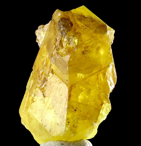Kryształ intensywnie żółtej siarki rodzimej z dawnej kopalni siarki.