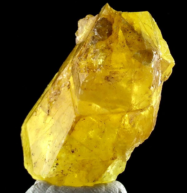 Kryształ intensywnie żółtej siarki rodzimej z dawnej kopalni siarki.