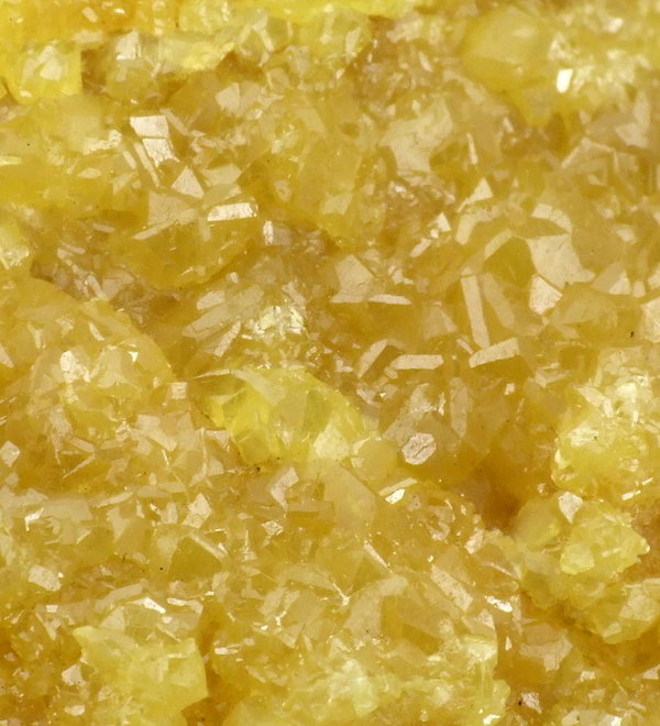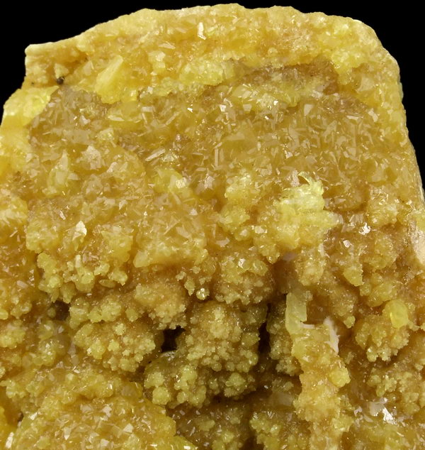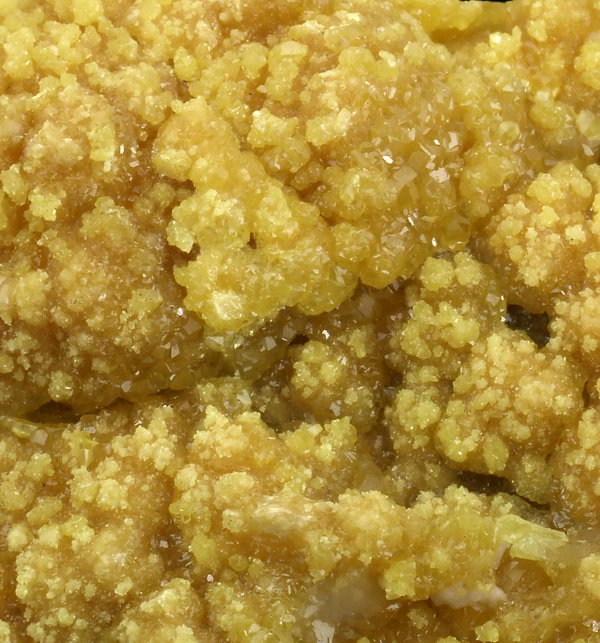Wspaniałe żółte skupieniaj siarki - druza błyszczących kryształków.
