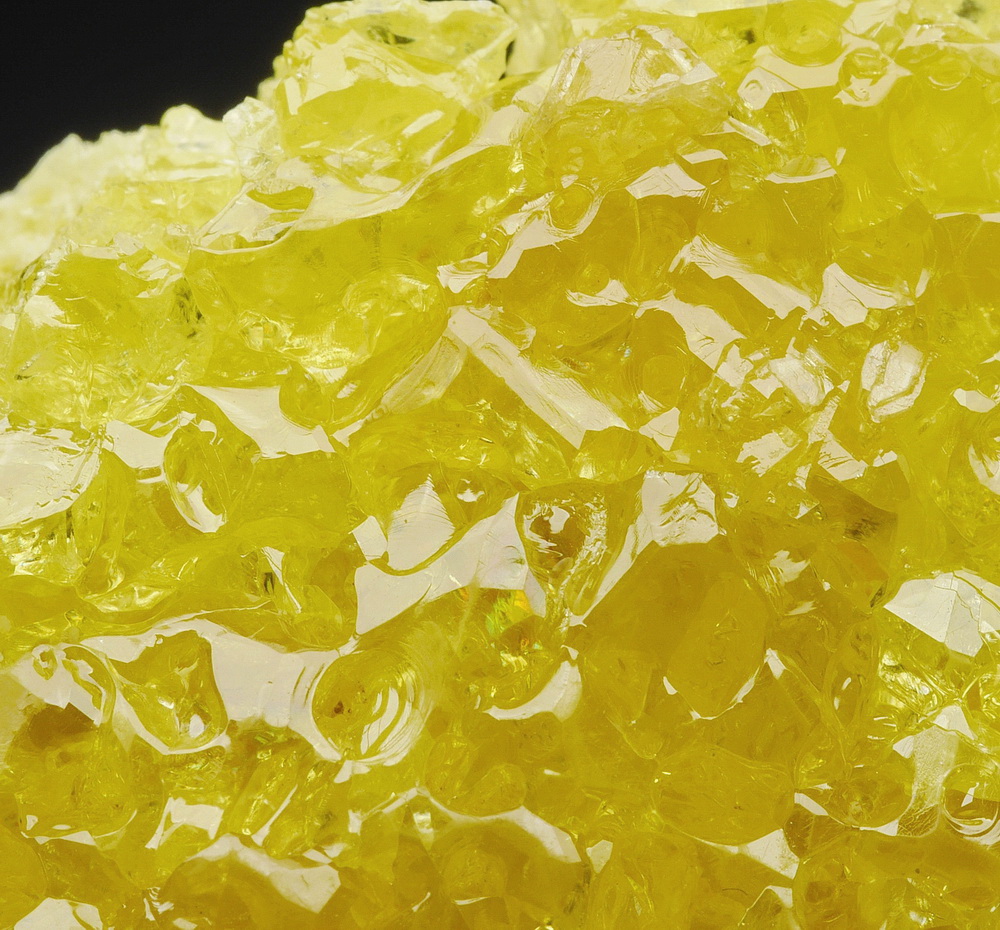 Dobrze wykształcone, przeświecające i błyszczące kryształ siarki rodzimej na matrixie tworzące piękną szczotkę.