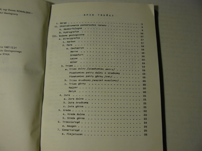 LICZBA STRON: 70 + 7 ROZKŁADANE MAPY, PRZEKRÓJ GEOLOGICZNY + ROZKŁADANA TABELA LITOLOGICZNO-STRATYGRAFICZNA