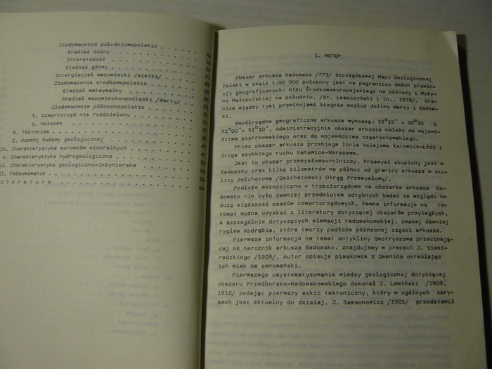 W pozycji tej opisano szczegółowo budowę geologiczną oraz zawarto informacje na temat: tektoniki, geomorfologii, rozwóju budowy geologicznej obszaru, surowców mineralnych, hydrogeologii, geologii inżynierskiej terenu.