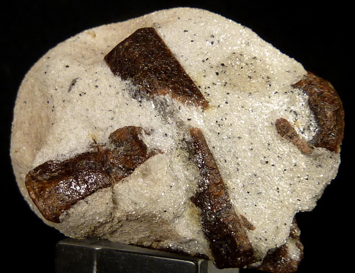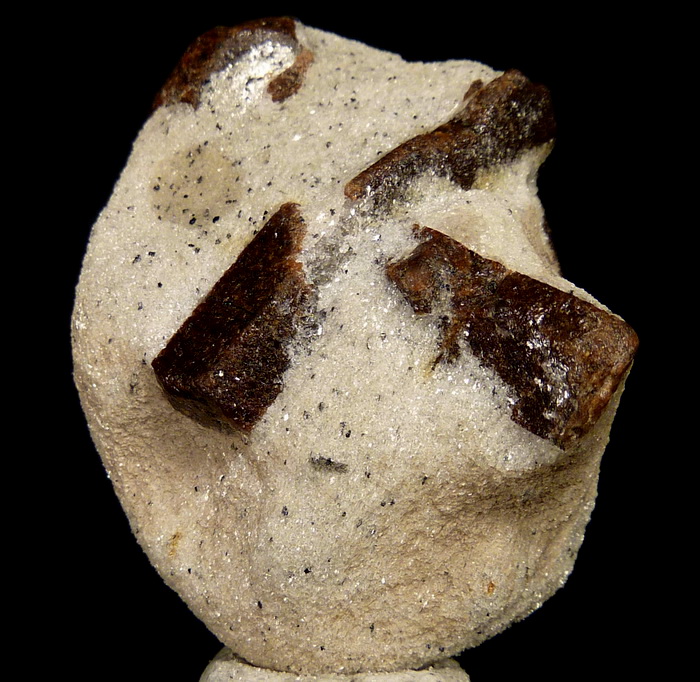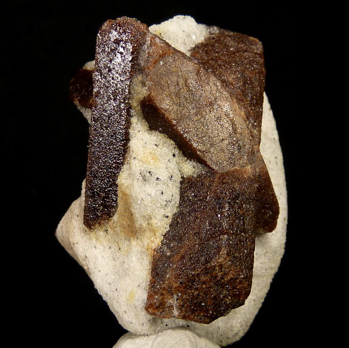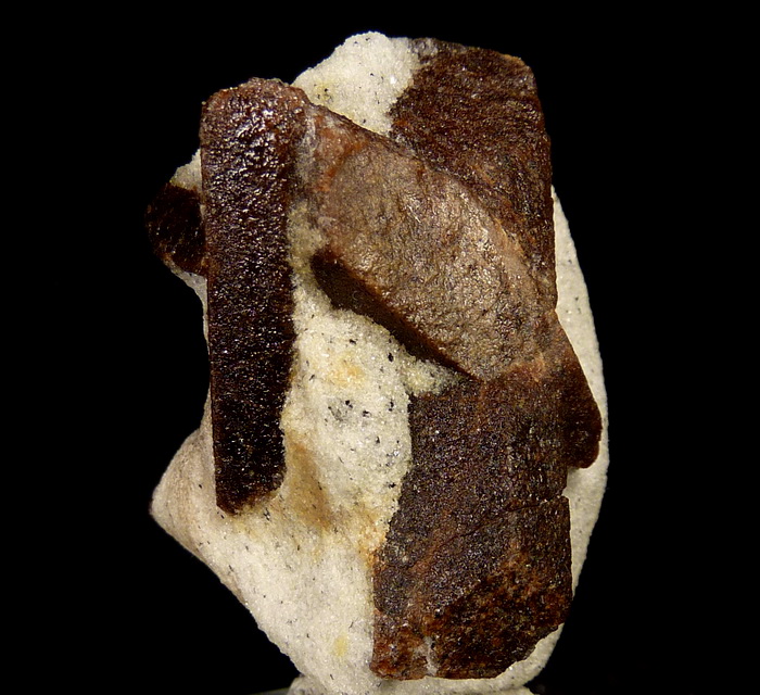 Efektowny, dwustronny okaz pięknie wykształconych kryształów staurolitu na kontrastowym białym matrixie.