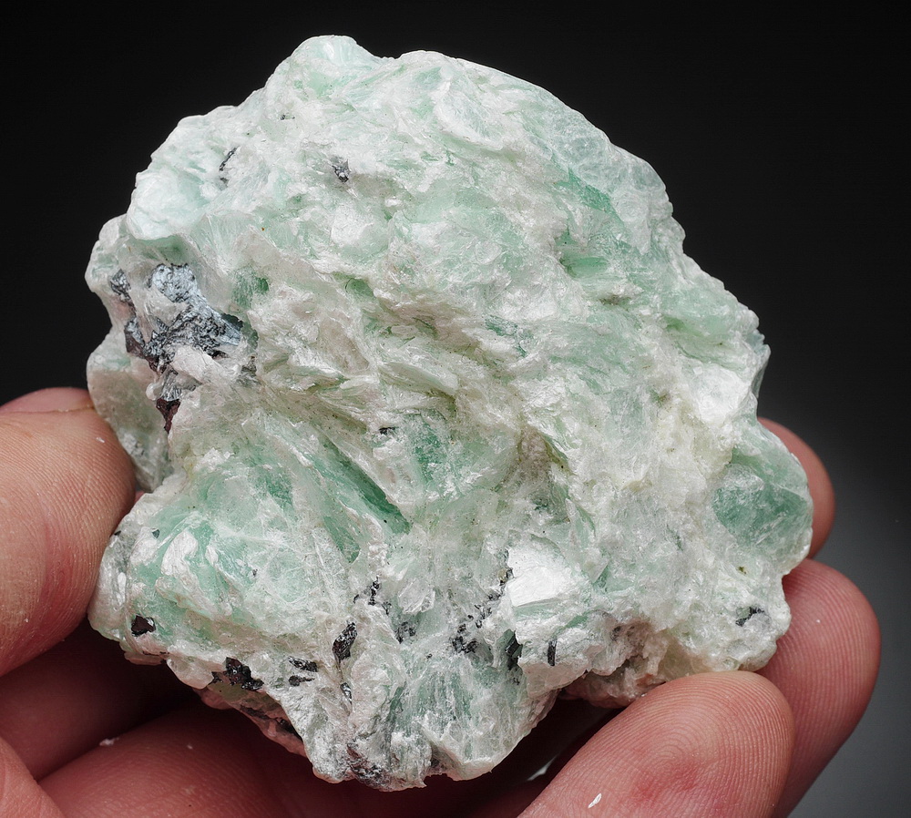 Blaszkowe, błyszczące skupienia talku z rzadkiej lokalizacji. Talk to najmiększy minerał na świecie - wzorcowy o twardości 1 w skali Mohsa