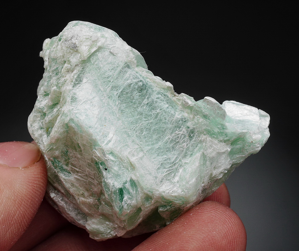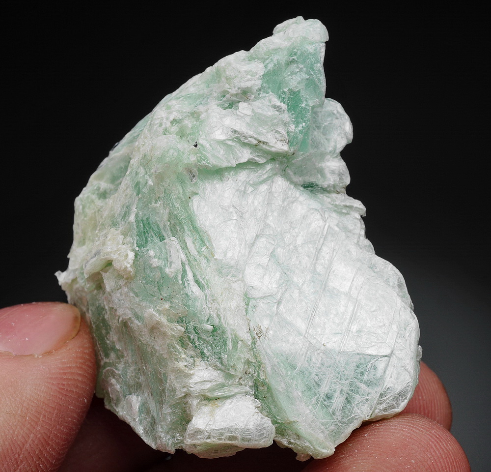 Blaszkowe, błyszczące skupienia talku z rzadkiej lokalizacji. Talk to najmiększy minerał na świecie - wzorcowy o twardości 1 w skali Mohsa