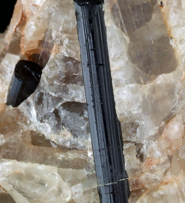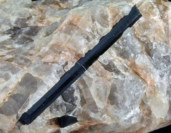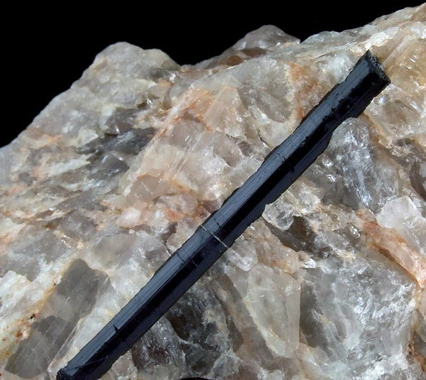 Rewelacyjny, długi i czarny kryształ turmalinu w kwarcu - 5.8 cm.