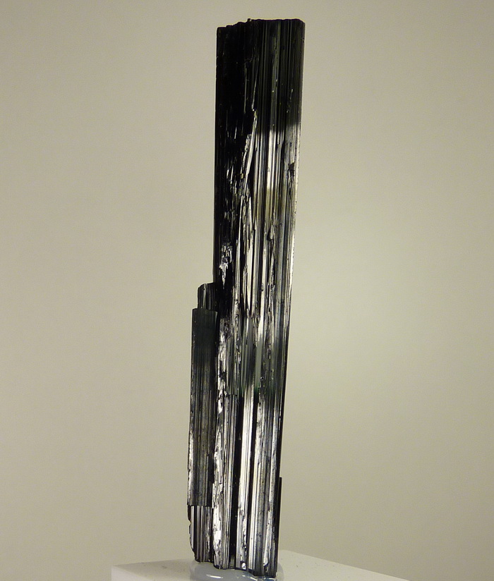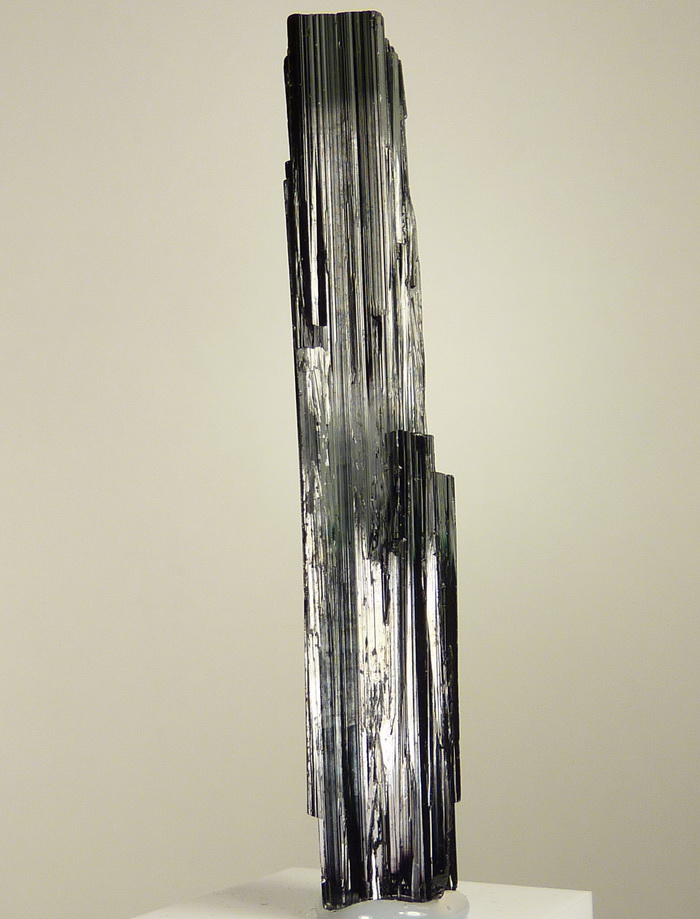 Efektowny , silnie błyszczący kryształ czarnej odmiany turmalinu - schörl (szerl)