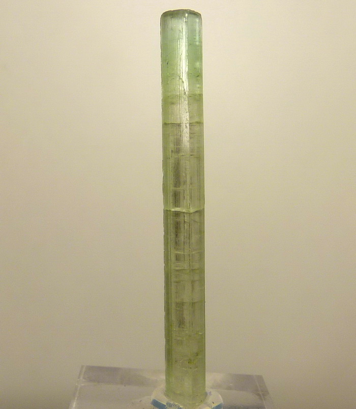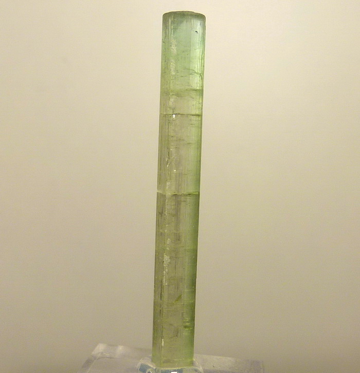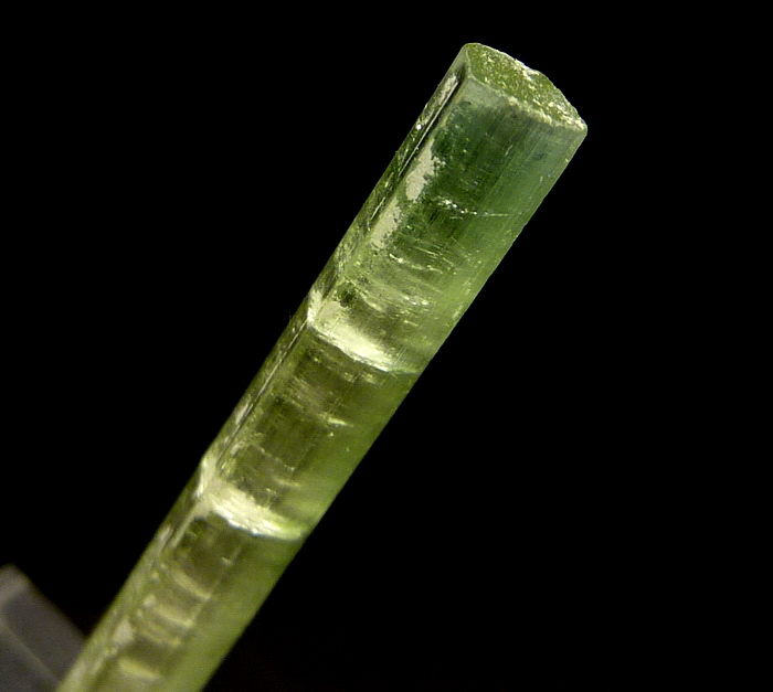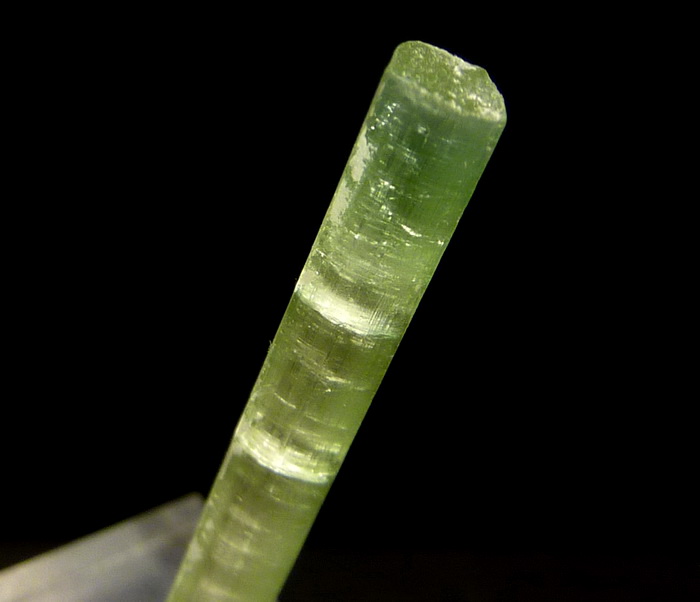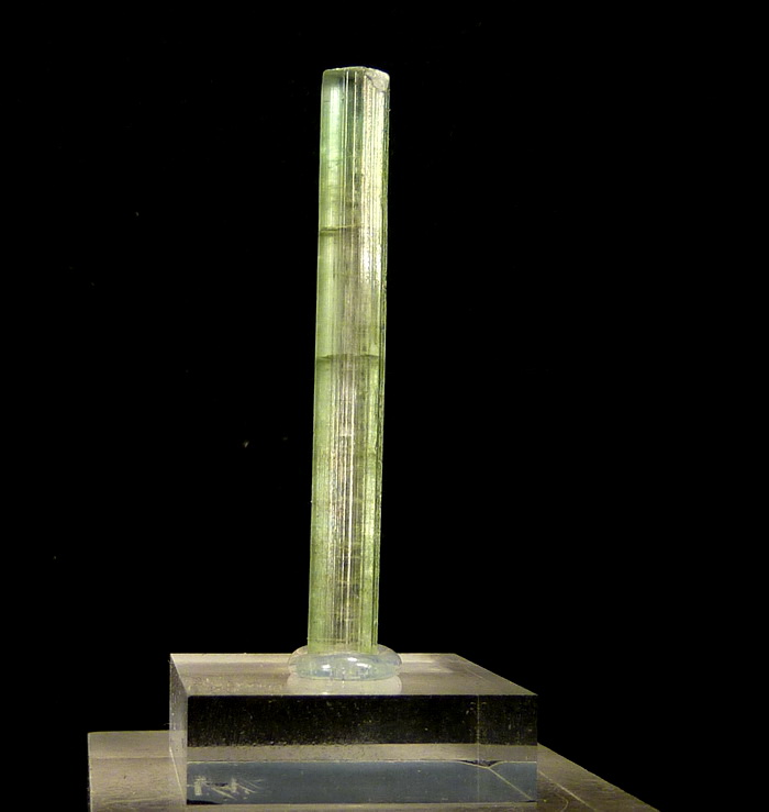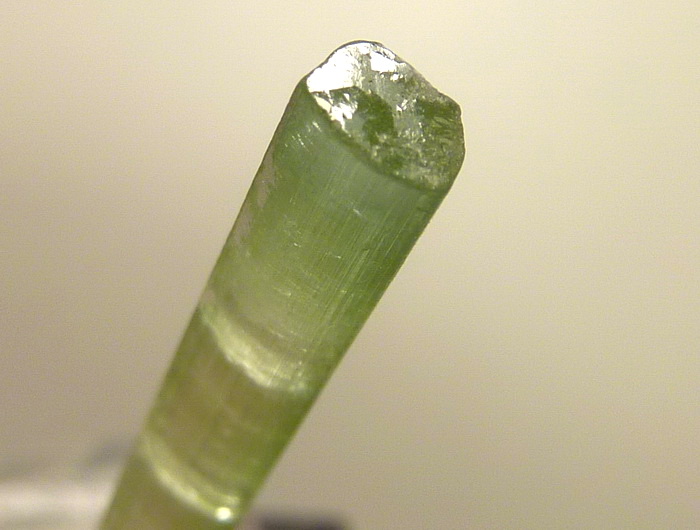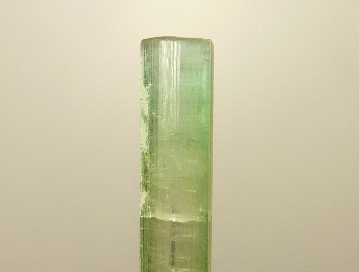 Duży, bardzo dobrze wykształcony kryształ zielonego turmalinu - werdelitu o pięknej zielonej barwie i płaskim zakończeniu.