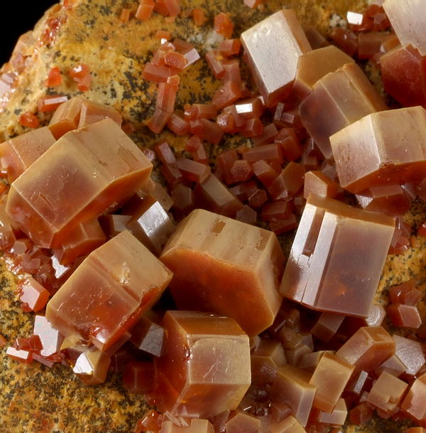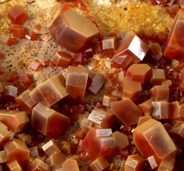 Dobrze wykształcone i duże kryształy wanadynitu osadzone na matrixie.